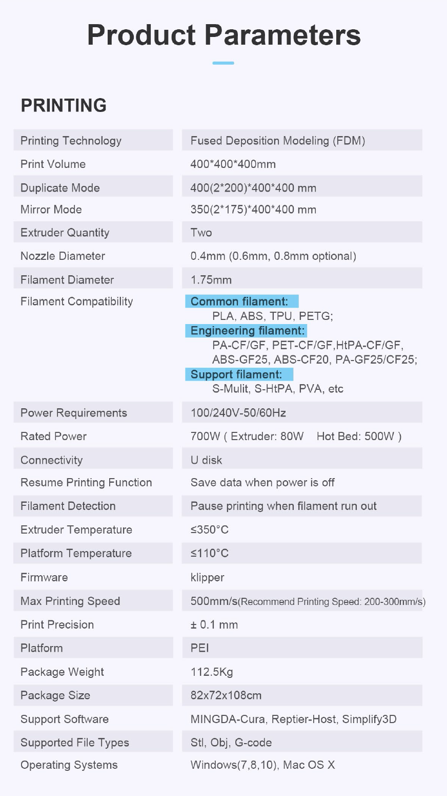 3D Printer MINGDA 400D