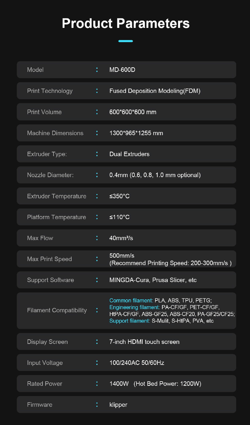 3D Printer MINGDA 600D
